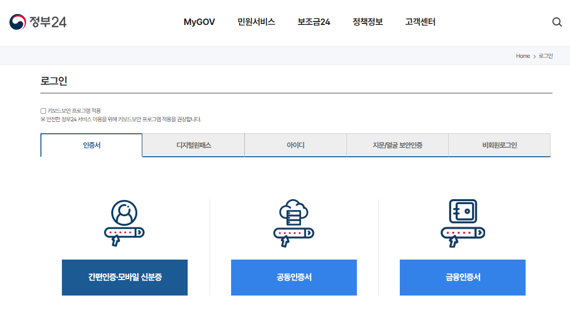 1 정부 24 앱에 설치 후 접속합니다