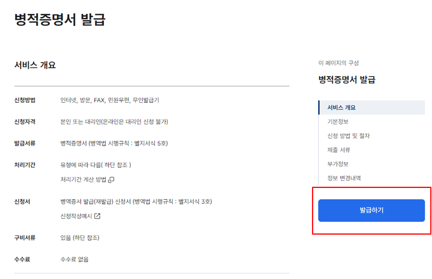 - 온라인 즉시 발급 대상 : (전역 1개월 후인) 군필자, '89년 1월 1일 이후 병역판정에서 면제된 사람, 병역준비역, 대체역(복무 중인 자)